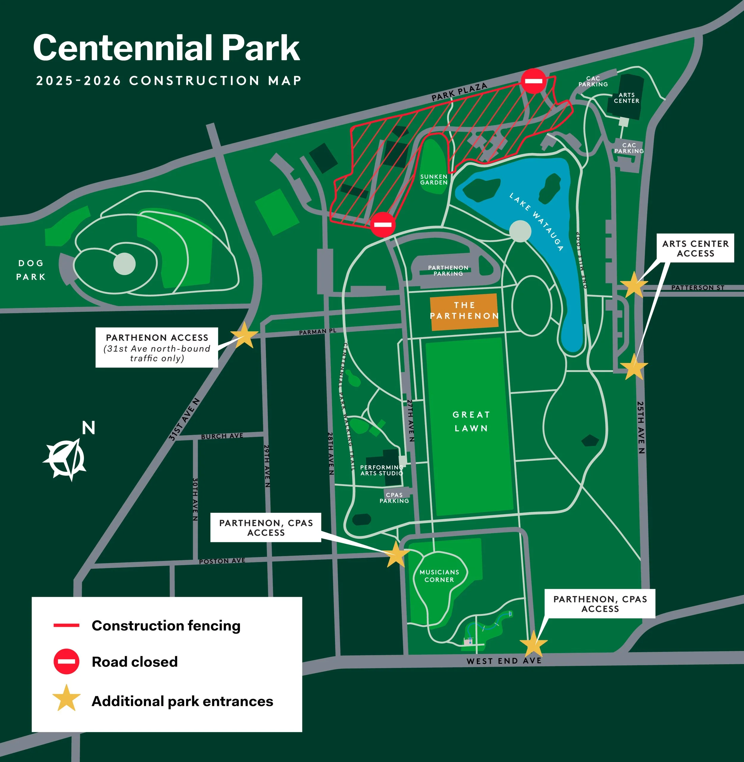 The north side of Centennial Park will be closed for construction in August 2025 extending through to Fall 2026.