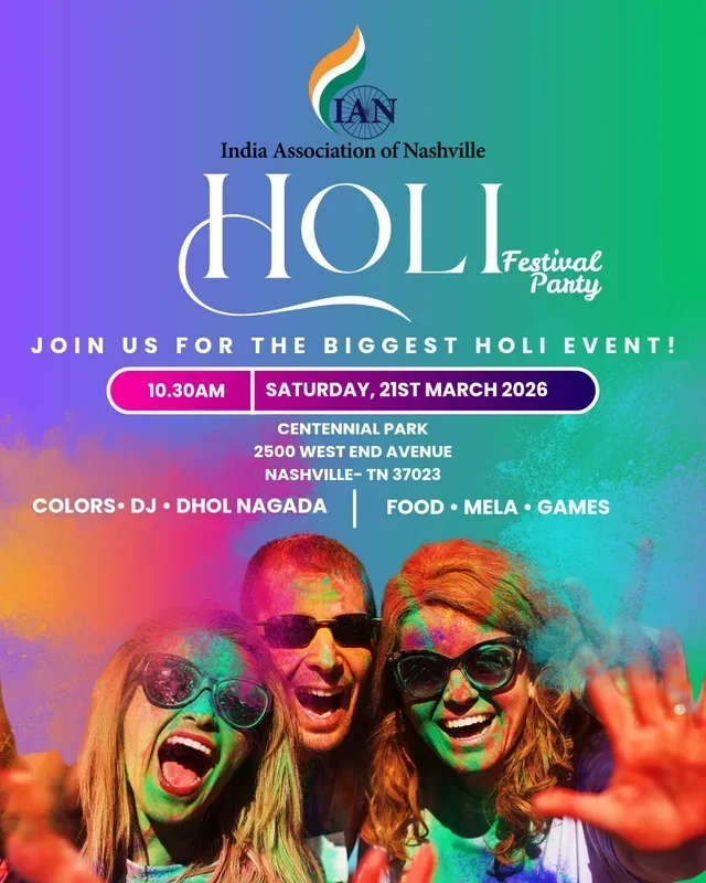 IAN Holi isn’t just another Holi — it’s THE Holi. The OG Holi Nashville has known and loved for years. From iconic dhol & nagada beats to high-energy performances, a DJ who knows how to move a crowd, and a full-on Mela Utsav vibe — this is where Holi comes alive. Add Holi-special food stalls, splashes of color, and the best crowd in Nashville, and you’ve got a celebration that feels like home, no matter where you’re from. If it’s Holi, and it’s Nashville — it has to be IAN Holi.— in Centennial Park.